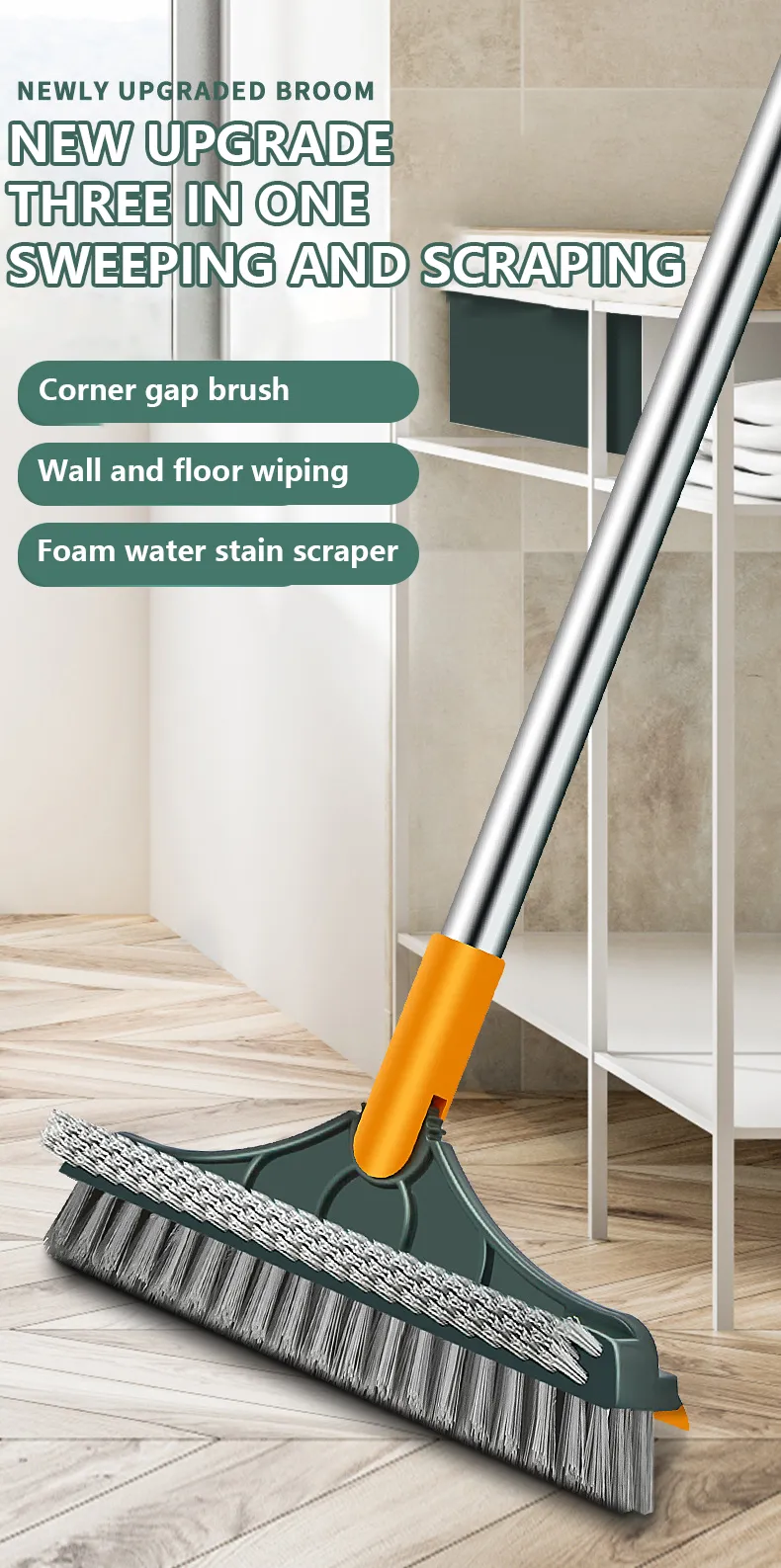 3 In 1 Floor Scrub Brush With Long Handle-floor Scrub Brush 3 in 1 Scrape & brush Push Broom Effective, Easy & Save Effort Brush + scraper 3 in 1 design floor scrub brush with stiff bristle + rubber squeegee, Stiff bristles effectively remove stains on rough and hard floor. Strong cleaning ability, Brush + scrape steps to easily remove the stain, stubborn grime, dirty water, and dust; Improve effectiveness when you doing housework.